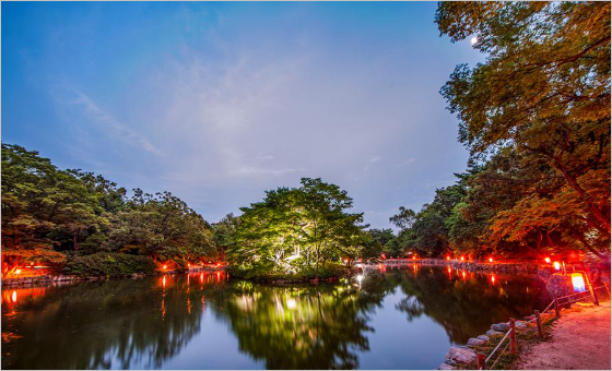 - 대화의 물길: 입구 진입로에서 고목과 조명이 어우러져 궁궐의 시간과 대화를 나누는 듯한 분위기를 연출합니다.